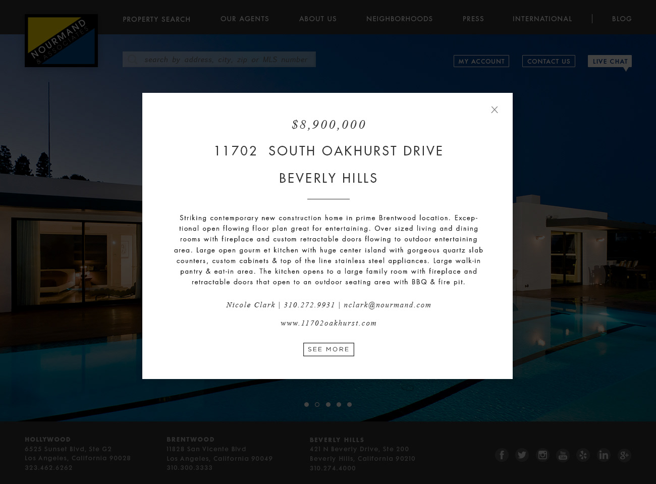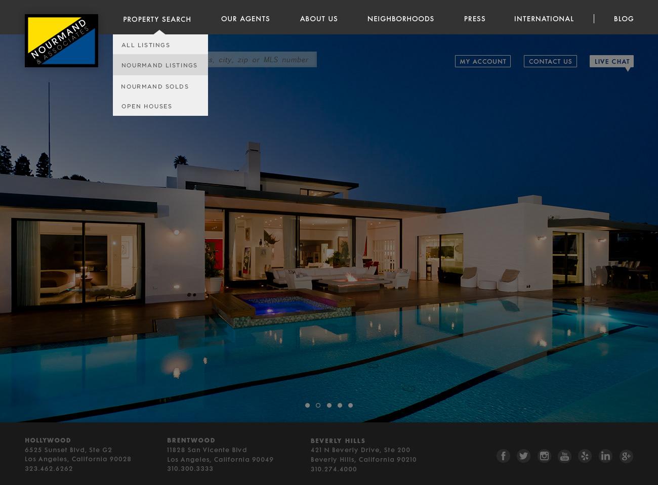Custom web design for Los Angeles residential real estate company, Nourmand and Associates.