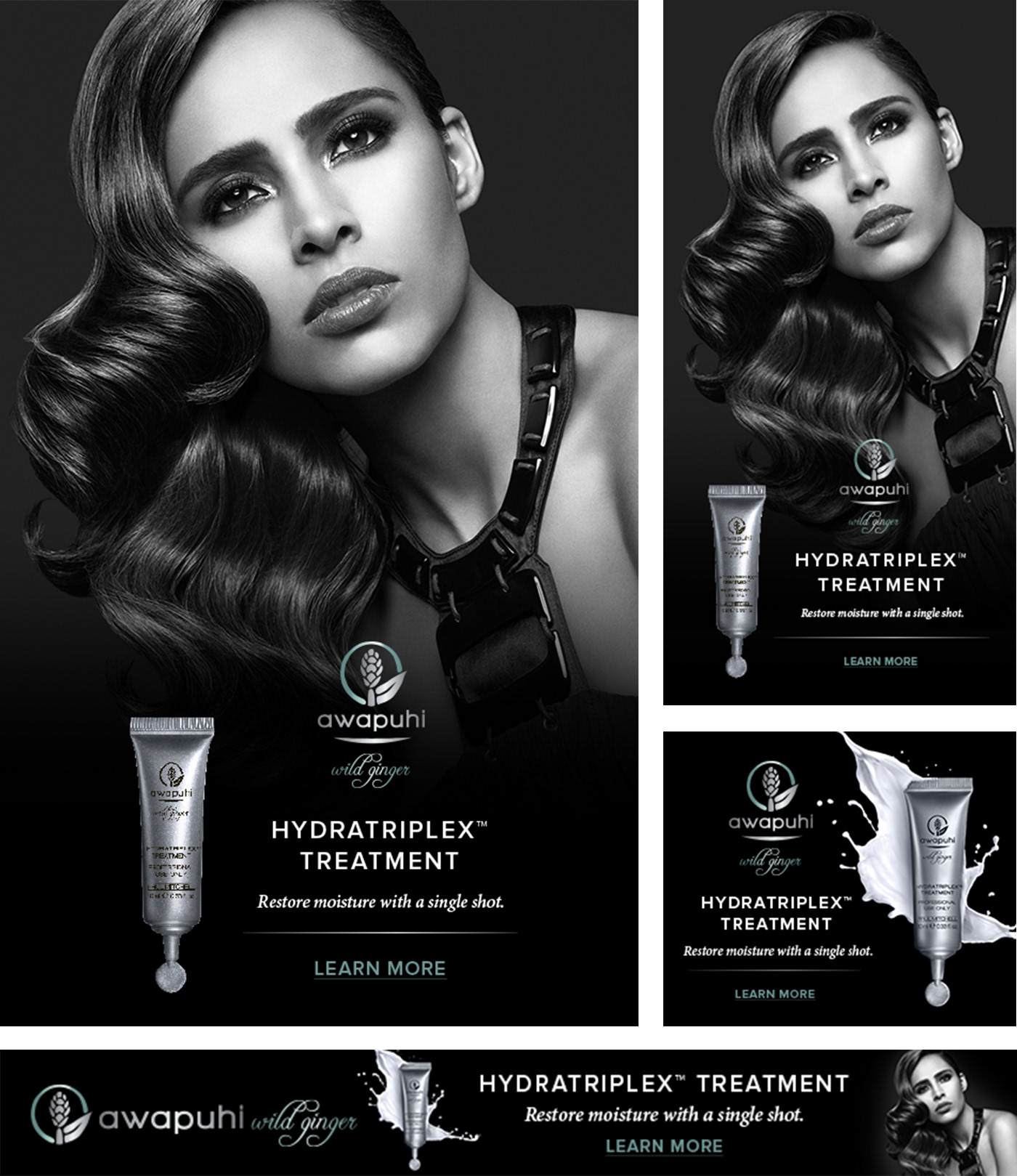 Digital advertisements for Paul Mitchell's Awapuhi Wild Ginger Line.
